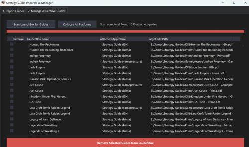 To Remove: Use Tab 2 to scan your library for currently attached guides, check the ones you want to unlink, and click Remove.