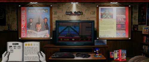 Main feature of the theme is that it shows Front and Back box covers as POSTERS on the wall and they change as you change the game and resembles Old Style Retro Room.