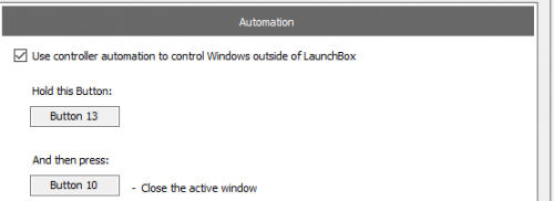 1. I configured the PS button (Button 13) as the Hotkey and "Options" (Button 10) to "close the active window".