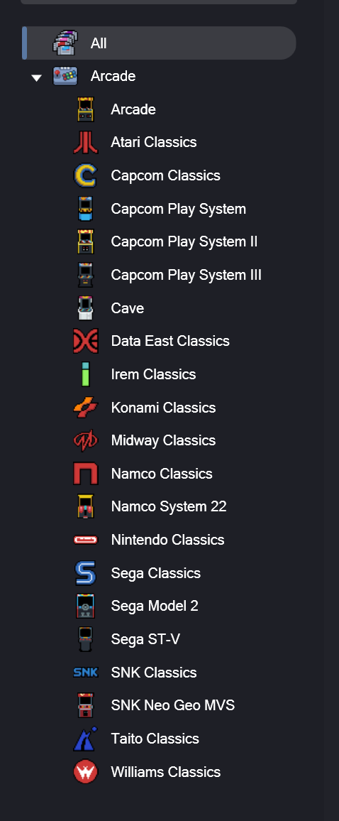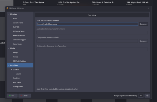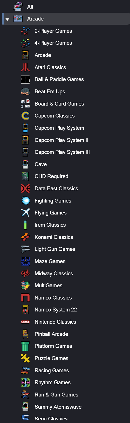 2. I come back with another issue now. I chose the games and exported them using the LaunchBox settings. I removed the arcade set from LaunchBox and started importing the games I exported earlier, but they don't start. There's a 1-second black screen, and that's it. What do I have to do? And I also want categories like beat-ups, fighting, vertical fly, etc. I suppose I imported them correctly. I tried to import them via ROMs in LaunchBox, and I selected the ROMs folder.