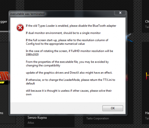 Hi, first of all thank you for such a great frontend, and i'd like to thank Coolpipes for making his collection available. Now for my issue, i've downloaded the Launchbox No Intro Taito Type X package, extracted all, but i can't get it to work properly. I've successfully set up NesicaXLive and i've got zero trouble with that, now i didn't test the other games but i've got an issue with BlazBlue Calamity Trigger, namely i extracted everything, and no matter what i do i can't get it to work with launchbox. There's two loaders in the pack (see Screenshot_8.png), i've done a bit of tinkering, and when i load the .bat, it runs w/o errors but when i run it trough launchbox trough the .txt file, the error (Screenshot_7.png) appears. I was able to get it to work with with launchbox w/o the error previously, but it detects only player 1 even though i set up both joysticks trough typex_config.exe. I need help on configuring this to get along with launchbox, i searched somewhat but couldn't find the right solution so i'm writing here. Any help is greatly appreciated. Any logs you need i can attach.
