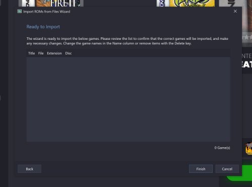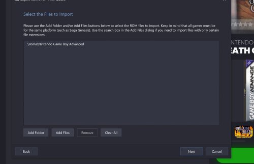 Even when I try to import the rom as a single .gba file it still shows nothing at the games to add screen at the end of the import process. Its almost like the importer does not recognize the .gba files. I do have GBA associated with retroarch and to nothing else. -