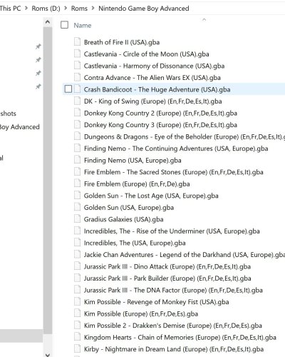 I am not having any luck trying to add my GBA games into launchbox. I have the roms in .gba format when I go to add I select the rom folder they are in. I it shows up as gameboy as my platform so I scoll down and select gameboy advanced then it lists retroarch as emulator then when I get to the screen where it shows games to be added it only shows 1 game TMNT and it does work. I have many other in the same roms folder all with the same .gba Also when I go directly into retroarch all the roms load fine I just cant seem to get lauchbox to recognize the games to import. Any ideas?