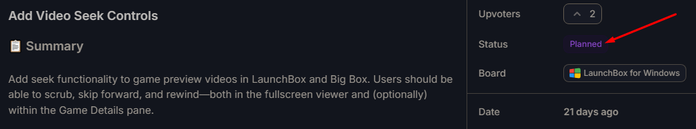 That was the one that came out in September. I was curious about the one Arturo saw today. For your situation (clicking update and restarting doesn't update it), I've seen reports saying they try it 3 or more times, and eventually the update takes. You might (not tested) be able to... with LaunchBox not running, delete the MAME Integration folder under /Plugins/ and then start LaunchBox. I'm not saying this is "the fix". But an interim means to resolving the issue you're seeing. I would recommend filing a Bug Report though. (Top is this page under Help & Support - File a Bug Report) -
