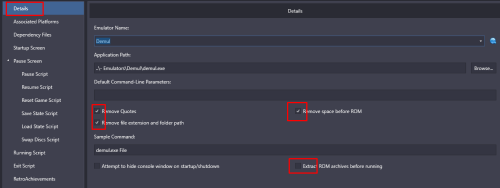 That most likely means you don't have the correct command-line parameters for the Associated Platform or one (or more) of the required checkboxes in the details section is checked/un-checked. When you have the Edit Emulator window open to the main details section, press Alt+PrintScreen. Reply to this message, put the cursor where you want the picture and press Ctrl+V. Do the same for the Associated Platforms section.