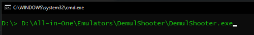 As in, you pressed Win+R and then entered D:\All-in-One\Emulators\DemulShooter\DemulShooter.exe and it did NOT launch? If so, good. Then it's not the script. Assuming that's absolutely the correct path, if it doesn't work from there, it won't work anywhere. What happens when you run D:\All-in-One\Emulators\DemulShooter\DemulShooter.exe from the Window command prompt? Or better yet, the whole command you're trying to get working. Doing this (or these) will at least (or 'should') output something in the window. Good, bad or indifferent.