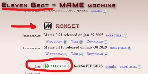 http://adb.arcadeitalia.net/default.php Find your machine (game) and scroll down to the ROMSET section and it will list the bios zip file name (if) needed. This example: Machine - 11beat.zip Bios file needed - aleck64.zip -