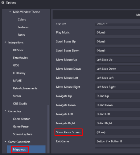 This section (Game Pause) is for keyboard mapping. The section at the bottom (Game Controllers < Mappings) is for controller mapping. I don't own a Sinden LightGun, so not sure it maps keyboard input or controller input. But I imagine it'd be controller input.