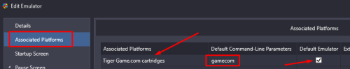 Using that Default Command-Line Parameter, I'm kinda surprised that any other game loads. Also, you should not have that , (comma) in there. First test things by removing just the comma, Actually, remove "-cart1" also. So your command line parameter will look like this: -keyboardprovider dinput gamecom Save and then try one of your Game.Com games. Now that we know that works, remove "gamecom" altogether. The easiest way to have this continue to work is if you have your Tiger Game.Com games in their own platform. Then in your MAME emulator, go into Associated Platforms and add your Tiger Game.Com platform (select it from the dropdown menu so you select and spell it correctly) and put "gamecom" as it's Default Command-Line Parameter. Check Default Emulator. If you don't have (or don't want) them in their own platform, you should be able to click the platform their integrated with (or just select All) and in the filter search, type "game.com". That should show all 20 of them. If you have them in their own Playlist, that will work just as well. After, you've confirmed you can somehow sort/find them, exit LaunchBox then download and install the Bulk Custom Command-Line Editor plugin. Restart LaunchBox, filter and select all the game.com games, start the plugin per the instructions and in the Parameter field, type in "gamecom" (without quotes) and click Finish. Play games.