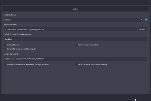 care to SS this? i'm adding -localdata as a default command line parameter and when doing so its no longer loading the game, just opening the emu itself. The docs seem to say that the emulator expects the first command line to always be the path to the image, meaning the -localdata should follow the rom path, not be between the exe and the path which it seems to indicate is the case. we need an option/checkbox to place arguments after the rompath for instances such as the aforementioned?