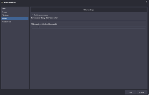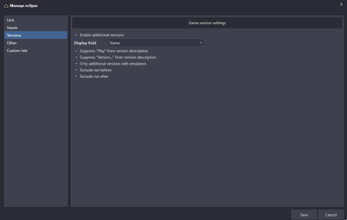 Eclipse Eclipse for BigBox is a different kind of theme. Rather than using the normal theme engine, it uses a plug-in to build the user interface from the ground up. The goal for this plug-in is to provide: Netflix style user interface with multiple lists of games on the screen at one time Voice search Random game function Platform list view Game detail view Options for categorizing games Startup theme Shutdown theme Attract mode (screen saver) Demo Installation Instructions 1. Download: https://forums.launchbox-app.com/files/file/3220-eclipse/ 2. Extract the contents to a folder 3. Inside the Eclipse folder is a folder called LaunchBox 4. Copy the Plugins, StartupThemes, and Themes folders 5. Go to your Launch Box installation folder and paste the copied folders 6. Open Big Box 7. Esc to get to options 8. Select Options > Views 9. Set Theme to Eclipse 10. Set Platforms List View to Platform Wheel 1 11. If you want to use the startup theme, Options > Game Startup - Uncheck Show "Loading Game..." Message - Check Enable Startup Screen - Startup Theme: Eclipse - Minimum Startup Screen Display Time: 5 seconds - Maximum Startup screen Display Time: 5 seconds - Check Hide Mouse Cursor on Startup Screens 12. Go back - the first time the theme starts will take a long load time to generate the image cache 13. NOTE - If you get any errors, you can check the log file called Eclipse.txt in your LaunchBox folder and message me on the forums to let me know General usage - Up, Down, Left, Right - moves around - Enter - selects something - Escape - cancel or go back - pressing it will get you back to the BigBox settings where you can exit the application - Page Up - pick a random game - Page Down - voice search Bezels - Bezel images can be displayed around the preview videos - The system will first look for a game specific bezel. If not found, it will look for a platform specific bezel. If not found, it will look for a default bezel. - A few default bezels are provided with the installation. You can delete them from the folders specified below if you prefer the videos without bezels. Game specific bezels - The system tries to find a game specific bezel image in the following order: 1. In plug-in media directory: ..\LaunchBox\Plugins\Eclipse\Media\Bezels\{PLATFORM}\{CleanGameTitle}.png - Here {CleanGameTitle} replaces any invalid characters with an underscore. Characters like ' and : cannot appear in file names so they are replaced with an underscore - For example: A bezel file for the game "19XX: The War Against Destiny" should have the following path and file name ..\LaunchBox\Plugins\Eclipse\Media\Images\Arcade\Bezel\19XX_ The War Against Destiny.png MAME bezels - If a game specific bezel isn't found in the plug-ins media folder as described above, then the program will look into the MAME installation folder. In order for MAME bezels to work, installing the bezel project for MAME would create files with this structure: ..\LaunchBox\Emulators\MAME\artwork{game.ApplicationFilePath}"Bezel.png" Retroarch bezels - Bezels installed by the bezel project for retroarch will go into a folder location like this: ..\LaunchBox\Emulators\Retroarch\overlays\GameBezels{RetroarchPlatform}{game.ApplicationFilePath}.png Platform specific bezels - These are used if there are no game specific bezels found - You can specify a different image for horizontally and vertically oriented games so that they fit appropriately - The platform specific bezel image files must have the following file names and locations: ..\LaunchBox\Plugins\Eclipse\Media\Bezels\{PLATFORM}\Horizontal.png ..\LaunchBox\Plugins\Eclipse\Media\Bezels\{PLATFORM}\Vertical.png System default bezels - These are used if there are no game specific or platform specific bezels found - You can specify a different image for horizontally and vertically oriented games so that they fit appropriately - The default bezel image files must have the following file name and location: ..\LaunchBox\Plugins\Eclipse\Media\Bezels\Platforms\Default\Horizontal.png ..\LaunchBox\Plugins\Eclipse\Media\Bezels\Platforms\Default\Vertical.png Looking for feedback I'm looking for any suggestions that would make this theme better. What's currently on my list for improvements: New option to add a game to a playlist from the game detail screen New option to display game manuals from the game detail screen Improve image cache logic to better detect differences between LB images and plugin image cache Use VLC for video playback Option to flip box art This could be expanded a bit more to Show achievements in game details Improvements to the options side-panel that opens up under the gear (add some icons and make it look a little less "blah") Several ideas for configuration options Default category and list to pick when opening Minimum number of games required to be included in a category This would allow you to eliminate lists don't have more than 1 game showing in the series category for example Improvements to the loading screen to make it prettier Performance improvements for loading times by doing more work in the background Overhaul of entire codebase Support for any resolution or aspect ratio - currently this only works (well) on 16:9 screens Make game lists more dynamic - the implementation of the lists uses a bunch of static image controls Localization If anyone thinks of anything that could make this theme better, I'd be interested to hear it! Source Code If you're interested in the source code, it's (not pretty and it's) available here: https://github.com/AtomFry/Eclipse Submitter Fry Submitted 10/22/2021 Category Big Box Custom Themes -