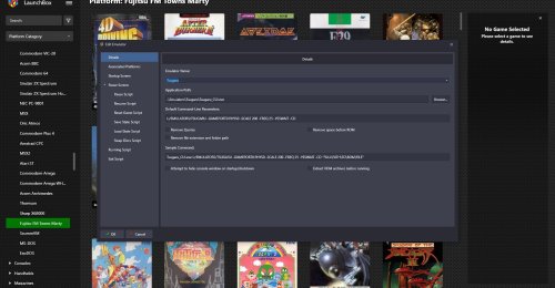 use the CUI.exe Here is a screenshot of my setup. The emulator needs more work in order to be more compatible with Launchers (no exit key, no fullscreen param etc). I have set the CPU to 25. Maybe it needs more. I am just starting to get involved with this emulator