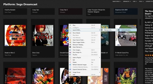 Thank you Neil I did add a second one called RetroArchGL and did all the configuration needed BUT... when I doubleclick eg a Dreamcast game it does nothing but when I right-click and select the only selection (shown in screenshot) which is retroarchGL...it works fine.. Why?