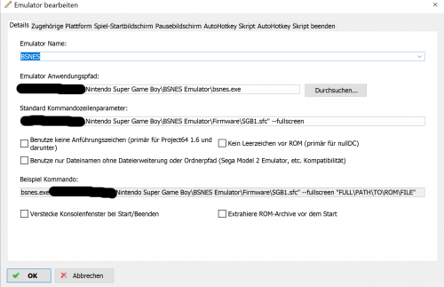 Thanks for the response @sundogak and sorry for my late response. My exact problem would be like this: 1) When I start the Emulator 2) I have to choose One of 2 Super Gameboy Roms Which the Files inside this folder , will look like this: 3) After I chose a File (to play either SGB 1 or 2) I choose the Gameboy game I want, that would look like this: So now I want to emulate similar in Launchbox. I treid something like this: But in the End, everything still won´t start the Game, it´s all black I hope this helps better, than my original post.
