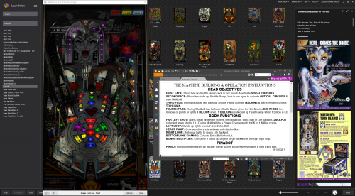 Hey All I thought I’d make my VPX collection available – hopefully someone with a similar set-up to myself will find it useful (no PinCab, but a monitor that rotates to portrait) The collection only contains solid state machines - no electro-mechanical pins I used a snap of the pin as the box front – all of the snaps were taken on a 2560 x 1440 monitor, and I tried to capture each pin when it had all of its lights on during its attract mode Where available each pin has its instruction card in pdf format and its flyers I scoured the net for the best photos I could find of each pins side art, playfield & backglass Here are the settings I use in VPX for these pins: Here are the pins (the instruction cards are in the pins folders): https://drive.google.com/file/d/1p435GtVGcR72jYnJitpmskOUW3OseOqK/view?usp=sharing Nvrams: https://drive.google.com/file/d/1IUpa4q4dWCIxT6btTNZ9nKB1Rv5qlijI/view?usp=sharing Here is the LaunchBox Images folder with the box fronts, flyers & photos: https://drive.google.com/drive/folders/11_e-XTJ9MHxi_LupsQmw7d8Ow0pFVpgS?usp=sharing XML: Pinball.xml If you’ve yet to try VPX + VPinMAME – all-in-one installer (& table releases) here: https://www.vpforums.org/ More table releases here: https://vpinball.com/ This is how it looks in LaunchBox: Some box fronts and the instruction cards: A set of photos: Hope someone finds this useful ?