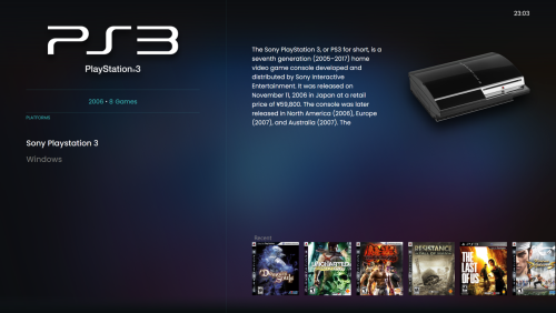 UPDATE: Just tried this again - and noticed something really weird. The behavior (of not displaying the art/details for the platform) only happens if the initial platform selected is the first platform on the list. Example: In my screenshots, I have 2 platforms - PS3 and Windows. If I load it up and BigBox starts off on PS3, the above issue happens. However, if I select "remember last platform" and I exit BigBox while I am on Windows, then when I come back to BigBox later, it will start off on Windows - and the image + details for Windows will be displayed. This suggests to me that there might be some flaw in the XAML for the platform view - if the first platform alphabetically is the "starting" platform, BigBox fails to display this additional data until the user moves through the selections. However, if the "starting" platform is somewhere lower in the list, then BigBox displays as intended. I also tried to reproduce this in the Default theme - does not happen there.