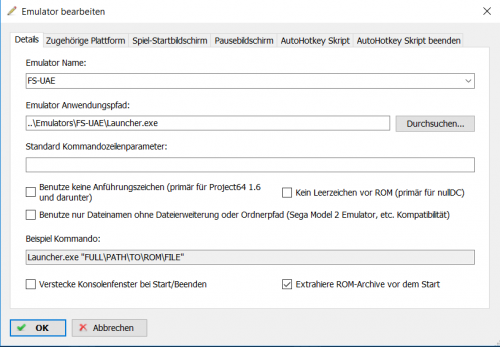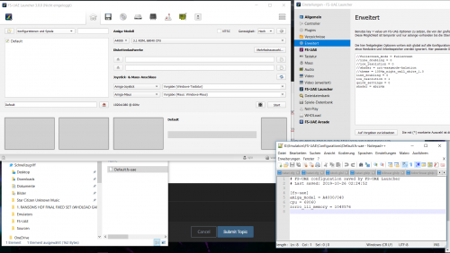 Hi all, i have many amiga games in pdf format (WHDLoad and NonWHDLoad). I use the actual version of fs-uae as a portable version. I have done and save in the fs-uae a Default-Configuration with a complete working config for all games i have testet (see on the screenshot). After that, i have imported the hdf-files to launchbox. After that, i have the Problem when i start via lauchbox the game, they don't load the config file and the hdf file. This time i check the configuration file and i see, that not all confugration i done in the launcher is in my Default.fs.uae (shader, etc...) I have seen a tutorial on youtube, somebody use uuids to start a game with a special config for it. But i think this is to oversized for me, because all game work for me with one configuration file Have somebody an idea how i can fix the problem. Perhaps with the fs-uae.exe and not with the launcher. But the problem here is, that no settings from the lancher can load, except the 3 lines from the config file. No fullscreen, no shaders, no joystick-configuration.