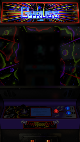 Centuri Gyruss 8k Decided to throw on a few things to this today. New marquee and bezel without the scratches. Enjoy. This ones for you Bonny C and Peter K. gyruss.zip -