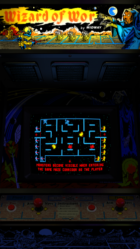 Midway Wizard Of Wor 8k I revisited this one since it's a favorite of mine. I swapped out the old photo of the marquee for a scan that I lit up for a huge bump in resolution. I removed the arcade reflection on the bezel with scratches as this one looks better without them. I gave the rest of the artwork on the cab a slight black light effect. Enjoy! This ones for you Charlie M. wow.zip -