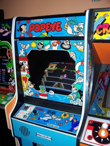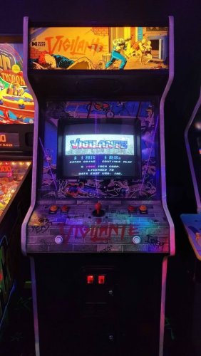 Yes, not only interesting but proper and correct unless you are 20 feet away and photographing the cab with a zoom lens. And then the entire cab looks funny and 2 dimensional. Depth and a sense of reality are lost when you squish everything into the confines of a 16:9 frame. I make my overlays look like the viewer is looking at a cab from a normal playing distance or a few feet away. If you want to see what i mean, download some photos of arcade cabs straight on like my overlays look. Take those photos and zoom in when you have a vertical 16:9 view until the edges of the bezel touch the sides. I'll bet that the sides of the cpo and marquee are cut off. That's because both the cpo and marquee are closer to you. And In fact this is what i usually do to get the proper perspective for cabs, I use photos as reference under my work so my work looks realistic. Check out the photos I've attached for reference. Doing this prevents my work from looking off. For example, there's a better chance my joystick ball tops will be the right size, that they won't be the size of tennis balls like i see on other peoples overlays. That everything will be the proper size and look like it's existing in a real 3 dimensional environment rather than in some fantasy world where things look wacky or off. Also keep in mind my purpose for creating these isn't to provide marquees for others creating vertical overlays. I've noticed that some people out there are literally taking my marquees, cutting and pasting them onto their own vertical overlays and taking the credit for all my work and not crediting me at all. These overlays here are strictly for my own amusement. I am sharing them as they are because they're meant for me. So be glad I'm sharing what i do and that i thank and credit others who provide reference i use in these overlays. I could just decide to start taking everything others create and never credit them at all. I really don't have the time to instructional videos, and pretty soon I won't even be able to regularly post overlays here. There's mountains of instructional PS tutorials out there that will give you volumes more skills than I could ever possibly teach you anyway. -