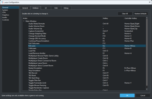 I can play Yuzu games through Big Box and I can bring up the pause menu, but clicking exit only resumes the game. When playing the game *through Big Box* (edit), it'll close when I press ESC on my keyboard. I've pasted some screen shots of my settings for the programs. Let me know if I'm missing any relevant information. Also, I'm not sure if it matters, but I recently reinstalled Windows and copied my Launchbox files back into the folder after going through the install. However, I had forgotten to also do this for Yuzu, so I did completely reinstall that program. I appreciate any help you can give me. Thanks! Yuzu exit script in Launchbox Yuzu Configuration > General settings Yuzu Configuration > Hotkeys