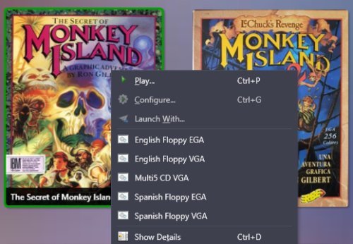 Disclaimer: This thread aims at providing some useful hints for those who aim at creating/curating their own MS-DOS game collection. It contains MY opinion and suggestions, but as everything in this universe, there's bound to be room for improvement. Regarding the "avoiding vendor lock-in": I own a lifetime license for LaunchBox and plan on using it for a VERY long time. However, only God knows what will happen, so better safe than sorry. Preface: I though I could make a little tutorial with some of the knowledge I've gathered about making your own collection of MS-DOS games to run with DOSBOX and Launchbox (at least, for now). Needless to say, eXoDOS is an unbelievable effort/project that will make your life easier than cutting hot butter if its contents suit you: basically, being an English speaker and accepting the so-called "best version" of a game as the one you would definitely play. If so, you've hit the greatest jackpot. (Almost) all MS-DOS games ready to play and integrated in Launchbox. OK, some of them have missing art, but that's something minor considering the effort eXo and the team have put into the collection and YOU will have to put into it (basically zero). Huge thanks to eXo and the team (absolute madmen)! Introduction: Now for the content itself. I used to use D-FEND Reloaded as my front-end for DOS games back in the day. While it made things easy and convenient, it was abandoned and I was stuck with some proprietary way of configuring and executing games and their corresponding configurations. Porting to Launchbox (or any other front-end) was not trivial and would require some (a lot of) tinkering. Another Launchbox user mentioned they were using a .BAT to launch every game and it turned out to be a great solution, triggering my current collection "architecture". Like in the certificate realm, "you have to trust somebody in the end". So I will be trusting DOSBOX and its multiple forks will be around for quite a long time. If somehow all of them get discontinued, you can always create a Virtual Machine with whichever O.S. you're using (I'm a Windows guy) and fit all your stuff in there. That being said, let's get to business. Best Practices and avoiding vendor lock-in: As I said, using D-FEND (or any other front-end) was convenient but not future proof at all. Using a simple .BAT will allow to launch any game using a simple menu. You will be wondering, "eXoDOS already does that so why bother?" Well, I'm a spaniard and I've grown with spanish versions of many games. Even though I'm quite able at english, I'd rather play the games the way I played them I-don't-want-to-remember-how-many-years ago. This is why I gather the english (usually the original version) and spanish version of the games (if available). Same would apply to any non native English speaker. It's a matter of preference. Also, I want to have both the floppy and CD versions of games (if existed), with and without expansions that changed gameplay, with and without speech packs, etc. to compare and enjoy both. On collections like eXoDOS (major Kudos again) that's not possible since there's usually only one "best" version of each game. 1 - Naming conventions: Launchbox will ignore anything in the game's folder name that's between parenthesis, so I chose to put the year, language, media and graphics version in there. Games such as Sierra and LucasFilm/LucasArts had AGI/SCI or EGA/VGA versions, so that would allow me to tell between them. An example: The Secret of Monkey Island (1991) (Spanish) (Floppy) (EGA) This allows telling at a glance the year (if multiple games with the same or very similar name were created), language (mainly english or spanish, although there may be some MULTI3 or MULTI5 games), media (floppy or CD version) and graphics (CGA, EGA, VGA, SVGA, AGI, SCI, etc.). This also allows to drag and drop your games inside LaunchBox so it can recognize and scrape them for automatic media download. Inside each game's folder there's a "C" folder (mounted as "C:") containing the installed game, a "Disk" folder (mounted as "D:") containing ISO images, floppy images, patches, etc. in their original form and an "Extras" folder containing manuals, guides, copy protection wheels, etc. This is the only part I will use LaunchBox's native feature to open the manual by providing the path. 2 - .BAT structure for avoiding "vendor lock-in": This is aimed at providing a solution that's agnostic to the front-end you will be using. I can simply navigate to the corresponding folder and double click on the game's .BAT to launch it from within Windows Explorer. But, like many, I like things pretty and my OCD FORCES me to use LaunchBox and its beautiful cover layout, so I tell it to use that .BAT instead of the game's own executable. Of course, you will have to disable the option that makes LaunchBox use DOSBOX for the game since you will be already launching it through the .BAT/.CONF files. Such .BAT is calling a .CONF file that will load the desired DOSBOX version (vanilla, ECE, Staging, Pure, etc.) depending on the best results along with a default .CONF file (that holds the main and common parameters for every DOSBOX game) and a secondary .CONF file that allows overriding some of those parameters. I like games with original aspect ratio and use "openglnb" renderer for (near) pixel perfect results. Also, ECE integrates Munt emulator and 3Dfx support so there's nothing else required (apart from an initial system wide Munt-32 installation pointing at the ROM files). In case you want to use Sound Canvas, a Fluidsynth soundfont will also have to be installed in your system. @ECHO OFF ..\..\..\DOSBOX\ECE\DOSBox.exe -conf ..\..\..\DOSBOX\ECE\common.conf -conf "Monkey Island.conf" As you can probably tell, I'm making this portable and path relative to the current location. You will only have to be consistent about the DOSBOX and GAMES folders locations. In my case, the folder structure looks like: The .BAT is located inside