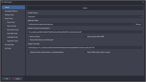 For some reason, my LaunchBox can't locate the ahk file, I setup the settings the same as yours. I also moved the files to the main E drive to see if that would work. Not sure what -L means on the error. Script file not found: E:\-L