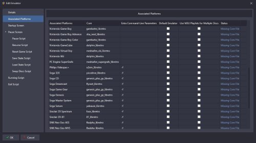 I think its because after I set AutoHotkey as the emulator exe, the cores show up as missing. How would I fix that?