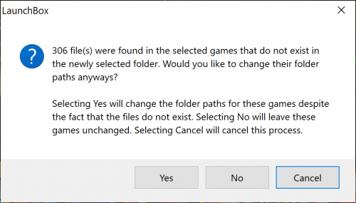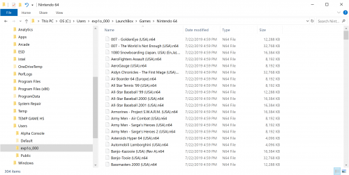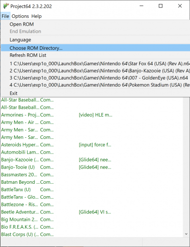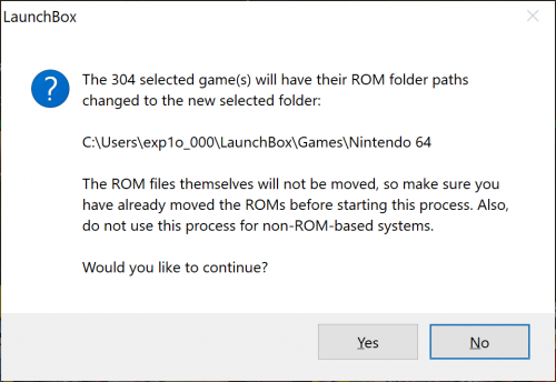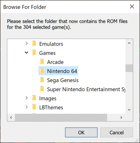 I've done this several times, but I'll go step by step on what I'm seeing. I select all games, choose tools/Change folder path. I see this and select the folder that I have verified the .N64 versions of the roms exist. It says please select the folder that now contains the 304 selected games... I hit OK and I get this... I select yes. Then I get this.... Here are the games in the folder at that location.... I select yes and I get this... Great. Now I try to load a game and I get... I don't get it. The only other odd thing that I've noticed is... when I select an individual game, it looks like it is looking for the .7z file... -