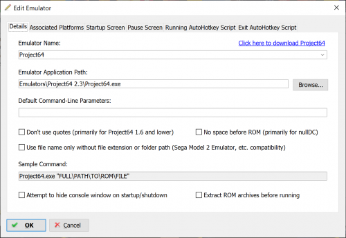 Hi all, I've been working on this issue independently and I've searched the forums, but I haven't found my specific issue. It seems like it would be an easy fix, but for the life of me I can't figure it out. I only have this issue with N64. Here is what I've tried so far.... I originally tried to setup N64 with RetroArch. I was continually getting the error and I gave up on it. I recently came back to it and saw a newer video posted by ETA Prime recommending Project64. So, I gave that a try. Still the same issue. I'm trying to load all of my roms from and external HD because my internal drive is not big enough. I thought that might be part of the issue, however, I'm playing roms from this drive on the other emulators. Next I noticed that ETA's rom for N64 were already unzipped, so, I unzipped them.... No Go... Next I went ahead and moved the N64 roms to the Games folder on the internal drive thinking surely this would fix it... NADA. I've tried selecting all of the games and then "Change Rom's folder path" and "Export/Copy rom files to new folder" from the tools menu. Here are a few tabs from my Project 64 edit screen... And here is the Platform.... Finally, I thought... I should just try to run it from the emulator. I opened the emulator selected choose ROM directory and BAM all of my roms populated and I can play them from there. I then went back and tried all of the steps I previously tried, but I still get the same error in Launchbox. What am I missing???