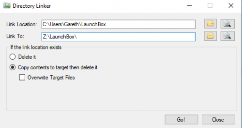 3. Open Dirlinker and choose your local launch box folder and the destination you would like to copy it to.