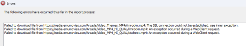 im having this issue too, brand new install of windows. clean install of LB importing first set of games (mame) seems to go fine up to emumovies, gets a decent way into it then hangs. cpu usage is high from LB, errors over and over in the logs i have seen a couple others posting similar issues. i thought it was something i did so i reinstalled windows and lb a second time just for the same behavior. is this possibly an issue caused by some kind of throttling in emumovies? been using lb for about 10 years cant say i have seen it before (maybe)