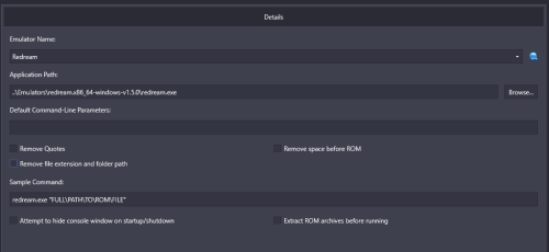 I decided to change my emulator to something that is more up-to-date than Demul, which never worked consistently for me anyway. I downloaded both Redream and Flycast as standalone emulators. Both work well on their own, launch games and let me play them with little configuration. Redream seemed a little choppy at times, so I wanted to use Flycast with my Launchbox setup. But, even though Flycast works on its own, every time I click on a game, the screen goes black for a second, and then Launchbox reappears. I have virtually the same outcome with Redream, only Redream launches, and I find myself at the "games" page of Redream, where I have to use my mouse to select a game. My usual experience with emulators is that the click on the game launches the emulator and the game, and away I go. Below are the screenshots of the emulator pages for Flycast and Redream. I have tried checking some of the boxes, but neither will launch the game. Both emulators correctly associate with Sega Dreamcast. The ROM path is the same as used in the emulators outside of Lunchbox, so it should not be a problem finding the ROMs. Is there a command line parameter I'm missing for either emulator? My preference is to get Flycast working, but I'd settle for Redream if anyone knows the answer. Thanks in advance. Scott