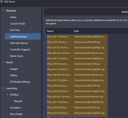 Hi. I download the latest MAME every month using Torrentcheck - then I do the MAME Arcade Full Set import and everything seems fine. But I've really just noticed that any rom with additional apps is duplicating entries. It might be the way I'm doing the import but has anyone seen this before? And is the best way to clean it up probably just to delete the platform and reimport? Thanks.