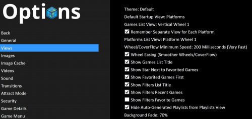 Ok, guys I'm still struggling with performance a bit here. What I failed to mention earlier was yes, I intend to run Laucnbox/Big Box on an older workstation laptop, but... everything is on an external HDD connected using USB 3 and when I connect this drive to my new primary desktop where I have a Core i7 6800, a GTX 1080ti and 32GB of RAM it runs just about the same. Very choppy navigating through the game wheel. I guess the USB connection could be the bottleneck but sounds like lots of other are using this method of having everything installed on a external and after all launchbox does advertise itself as being "mobile" for this very reason. Shouldnt be having performace issues, since earlier the blame was on my laptops GPU and what little memory it had. Lastly, as I pointed out before, I turned off just about all features in the default theme except for clear logos. I have background images turned off, but check it out. I still have them showing up. Either I'm not following and background images are something different or there's a bug. settings showing where I have background images turned off: and when I hover over a game I still get background images behind everything, whats the deal? Thanks