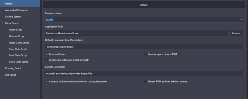 Launching directly from MAME, both keyboards are recognized, and work as expected. From DOS prompt, entering "mame -keyboardprovider dinput {name of rom}" works as well (both keyboard and cabinet keys are recognized). If i launch to MAME (screenshot above of config) from LaunchBox, only one keyboard is detected. My cabinet keyboard does not register keypresses in MAME. In both instances, i'm running from the same MAME folder. -