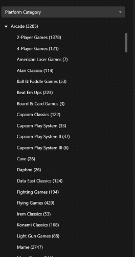 none of the mame stuff works. I tried a different startup theme and even copied a known working xaml to "mame.xaml". I can get a bunch of other platforms under the Arcade category, like Sammy Atomiswave, Naomi, Sega Model 2/3...but nothing that uses MAME. I'll try the default startup to verify something didn't get corrupted. Thanks for looking at this. I'll let you know if i can figure out what's going on. -