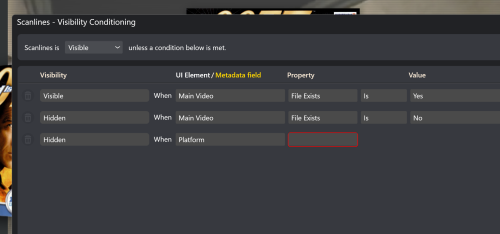 @faeran Thanks, I managed now regarding wheels. My target was to edit the theme to add scanlines and I got it. I just didn´t figure out how to let the scanline not visible with platform conditions. For ex. I don´t want the scanlines for Xbox 360, PS3 and Wii U platforms and I can´t see variables where I can choose from. Or do I need really to create a second view without the scanlines and manage it on big box? But in this case I can´t create a second TextGamesView, right? 1769153541_LaunchBoxBigBox2023-02-2519-34-31(video-converter.com).mp4