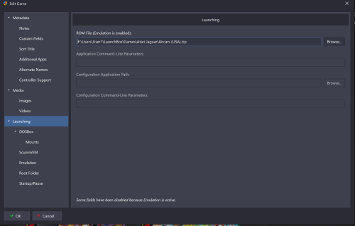 Working here with latest BigPemu (V1.04) and LaunchBox Settings as follows Using zipped folders for each game, not unzipping before loading and inside the zips are .j64 files Might be worth putting images of your set up to see if others can see any issues Good luck -