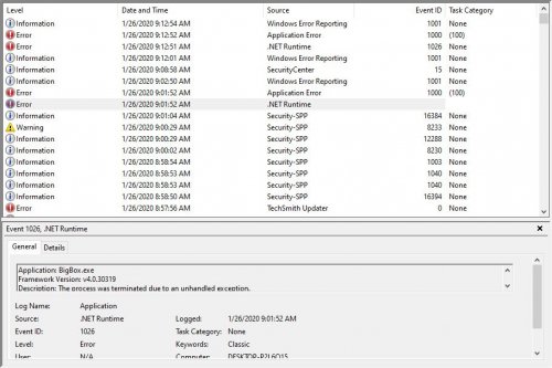@Jason Carr Ok I tried to load up BigBox directly and again it wouldn't load, ran the event log and these are the details of each of the events pertaining to it: