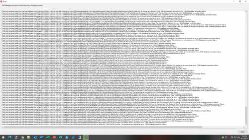 Apologies for responding to an old thread but I seem to be having this exact issue as well. Right now I'm up to >400 errors as per my attached screenshot. Database connection error. Seemed to just start happening recently as it was working earlier today?