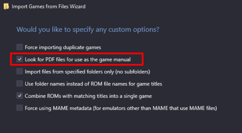 When importing a game there is the option "Look up PDF files for use as the game manual", but there's already an option to download manuals from EmuMovies. What is the option "Look up PDF files for use as the game manual" for? If it downloads PDF files, then why isn't this option available on the "Update Metadata and Media for selected games" tool? Is there any way to use the "Look up PDF files for use as the game manual" option, on games that have already been imported, or do I have to reimport all of my games to use that option?