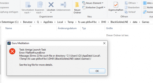 Thanks @Zombeaver. I posted a foolish Screenshot. This one is correct: Actually the path is present, but for some reason not found by the FS-UAE emulation.