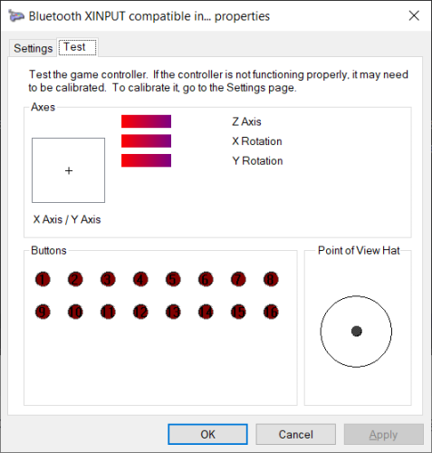 Can you windows search "set up game controllers" and click on the item that appears. Then select your controller in that list and hit properties. A test like the image below should show. Does your buttons register there?