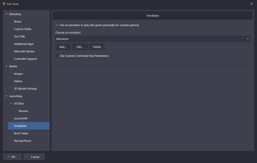 Select the game and press Ctrl+E to open the Edit Game window and then go to Launching > Emulation and change the emulator there. Should look like the following: