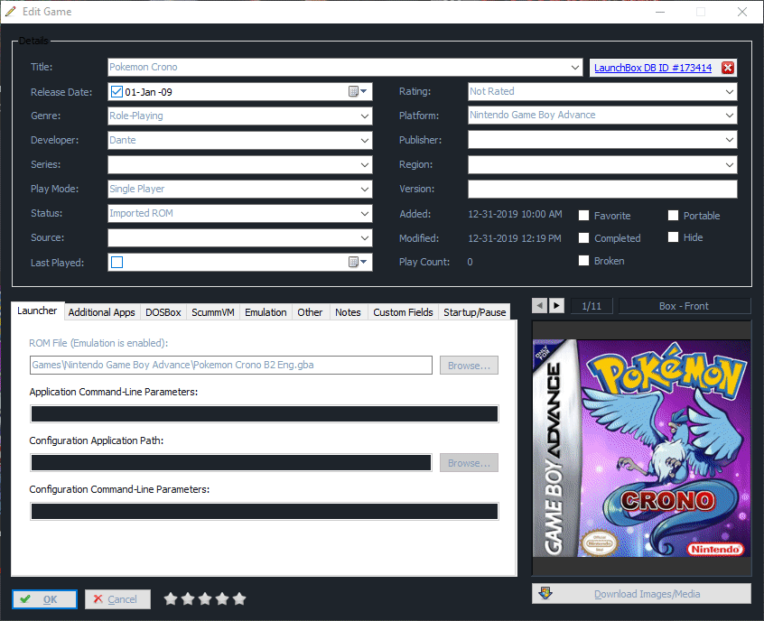 If you want to calculate an estimate of how much disk space costs CLICK HERE I'm not doing the math for kb/mb. Those with data caps or on slower connections, should scrape with a plan and not go about it mindlessly in the case of massive downloads There are options. For some reason LaunchBox won't download any images when I do a massive scrape for only rom hacks, I have done them ALL individually (by hand). You clearly have no idea how much space those images take up. It's unlikely that a user has 20+ gigs of Pokemon ROM Hacks for GBA. For a bit of perspective, here are two folders that contain ROMs and images only for Pokemon ROM Hacks for the Nintendo Game Boy Advance: Let's dive into the "Screenshot - Gameplay" folder: Here is the parent folder for all my images contained in LaunchBox on my travel drive: Traveling drive 1tb SSD. Main drives are at home or I would post screens of those 8tb HDDs as well: @MadK9 That's not all the rom hacks I have. I prefer to work on one category at a time. PLUS, that's not compressed yet [(which is quite easy) you could compress images too, but not a major concern] -