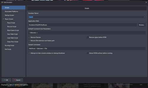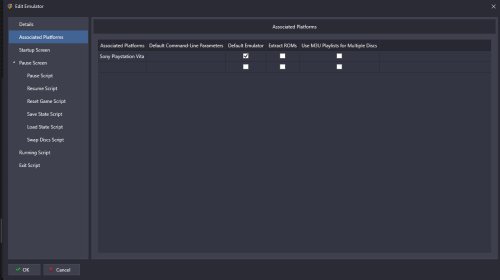 751813923_SonyPlaystationVita.xml {{{{ROM LINKS REMOVED}}} <Emulator> <ApplicationPath>Emulators\Vita3K\Vita3K.exe</ApplicationPath> <CommandLine>--fullscreen -r</CommandLine> <DefaultPlatform /> <ID>3e5d187b-fc20-4067-92c7-4541fb3cff22</ID> <Title>Vita3K</Title> <NoQuotes>true</NoQuotes> <NoSpace>false</NoSpace> <HideConsole>true</HideConsole> <FileNameWithoutExtensionAndPath>true</FileNameWithoutExtensionAndPath> <AutoHotkeyScript>; This section closes App when pressing Escape $Esc:: { Process, Close, {{{StartupEXE}}} }</AutoHotkeyScript> <AutoExtract>false</AutoExtract> <UseStartupScreen>true</UseStartupScreen> <HideAllNonExclusiveFullscreenWindows>true</HideAllNonExclusiveFullscreenWindows> <StartupLoadDelay>5000</StartupLoadDelay> <HideMouseCursorInGame>false</HideMouseCursorInGame> <DisableShutdownScreen>false</DisableShutdownScreen> <AggressiveWindowHiding>false</AggressiveWindowHiding> <UsePauseScreen>true</UsePauseScreen> <PauseAutoHotkeyScript /> <ResumeAutoHotkeyScript /> <DefaultPauseSettingsPushed>true</DefaultPauseSettingsPushed> <SuspendProcessOnPause>true</SuspendProcessOnPause> <ForcefulPauseScreenActivation>true</ForcefulPauseScreenActivation> <LoadStateAutoHotkeyScript /> <SaveStateAutoHotkeyScript /> <ResetAutoHotkeyScript /> <SwapDiscsAutoHotkeyScript /> <ExitAutoHotkeyScript /> </Emulator>