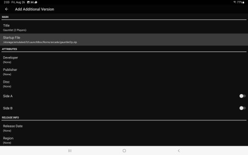 19. Hey @Jason Carr I am having issues with the new beta that it is not letting me add new versions of a game. For example, i am trying to add the 2 players version of gauntlet. If you look at the screen shot's i've attached, i have added the name and the path to the rom but when I click on the "save new additional version" arrow, it takes me back to the edit meta data screen, but the new version is not added. I am using a full mame rom set with no clones. Please help.