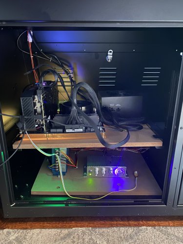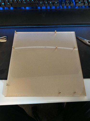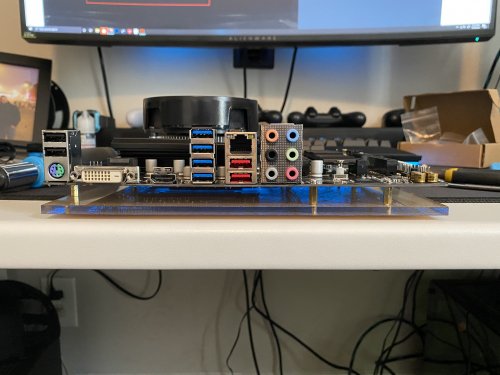 Last update for today (maybe) hey everyone Just an update to show off a few things, I had originally intended to just throw my parts into a cheap pc case but find the cheaper options to be pretty bad. So I opted to just build the pc into the cabinet and designed and laser cut an acrylic motherboard mount so I could keep the motherboard cool and raised off the shelf. I still have some wire management to do and will probably need to need to design and 3D print a gpu support because it’s not bolted down to anything and I had to remove the gpio cover from the graphics card for clearance. That said it’s running well and when my larger 11tb drive shows up I’ll connect both it and my 8tb drive and start putting LaunchBox together. I have attached some photos of it running and the motherboard tray I designed, please let me know if anyone wants the files for that and I’ll put them up. See you guys on the next update. -