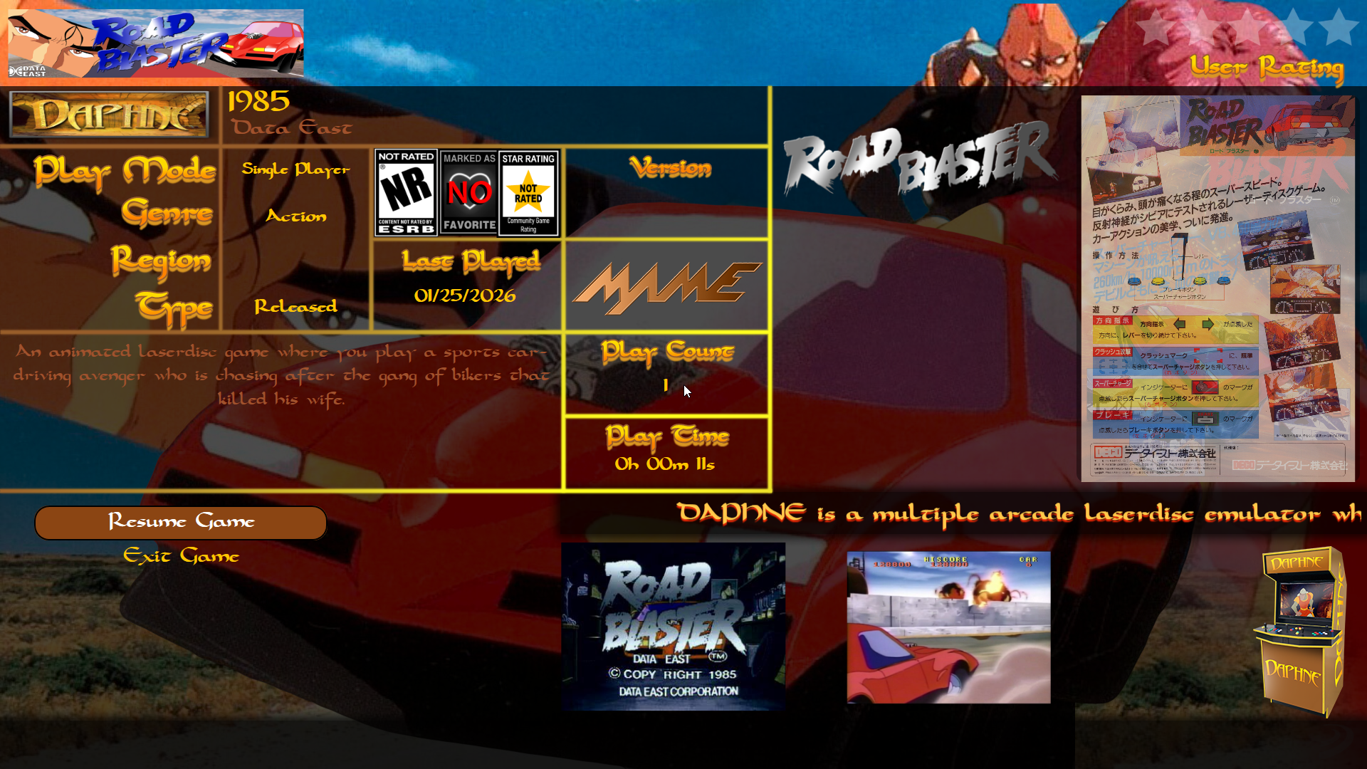 Nice discovery that an .m3u file works, thanks for digging into this a bit. It would be the random track selection that I am wanting when the pause menu first displays. Even if it just played that 1 randomly selected track in a loop that would suffice. Sounds like m3u files might be 'the way', but in it's current state that wouldn't get all the way there. I think what I'm trying to do (in a grossly oversimplified nutshell) is eliminate any possible need for rlauncher without sacrificing data and still making use of it....a nearly impossible thing, I know. Number 2 and 3 on your list is a deal breaker for me. Because we have things like AI now, I did have a script created that will rename all of my current single mp3 files to the baserom name (not completely perfect on the name matching, but it's like 98% and that was good enough for me) and update the music path on each game to the full path of the renamed mp3, and also set the 'missingmusic' flag to false. This saves from having to do each one manually in launchbox. Something similar could be done with the m3u file creation and pathing at scale with m3u file creation based on whatever exists in the folder and updating of musicpaths in the system.xml file. That said, I don't see a point in proceeding if the track still won't be randomly selected at the end of it. It does allow for me to merge/store files in folders...so it's not nothing. I would still only want 1 track to be played and looped, but the track is randomly selected at startup...which I think solves for item number 3. I'll have some more thinks about stuff that might work, It seems that someone on emumovies has already done some extensive work on selecting a track for each game and making a package based on a system for each game...which is nice and integrates nicely with this. But I prefer to solve the same problem in a different way that allows for more options on the user side. -
